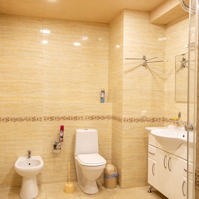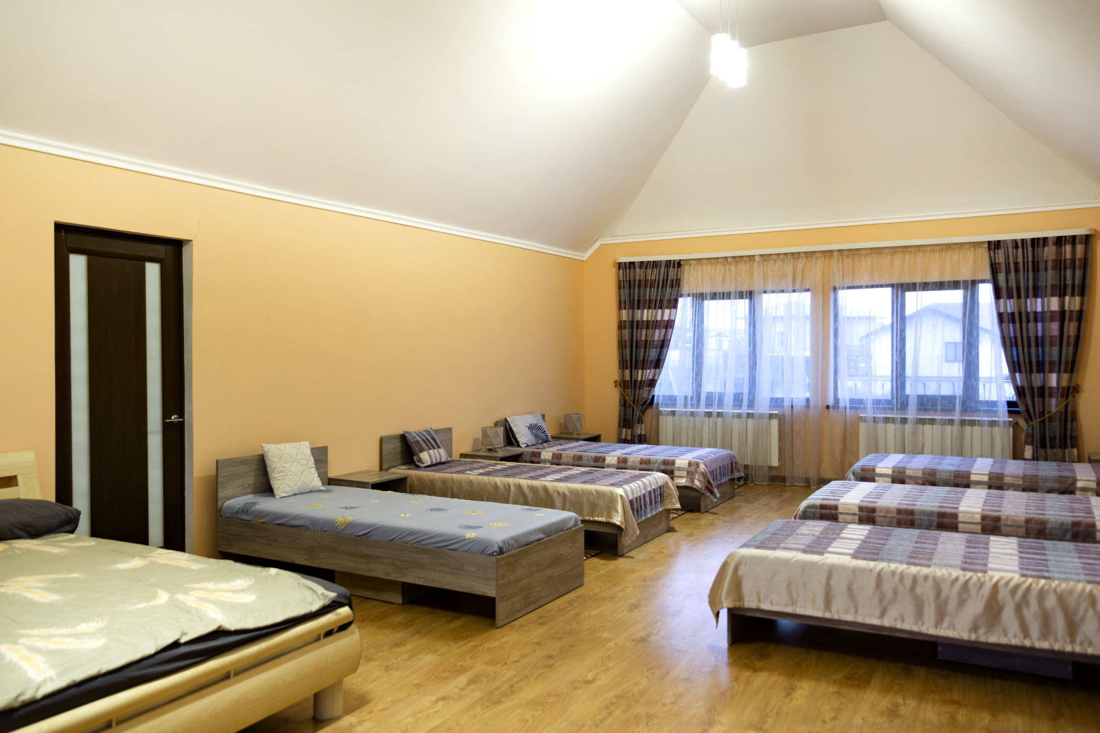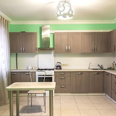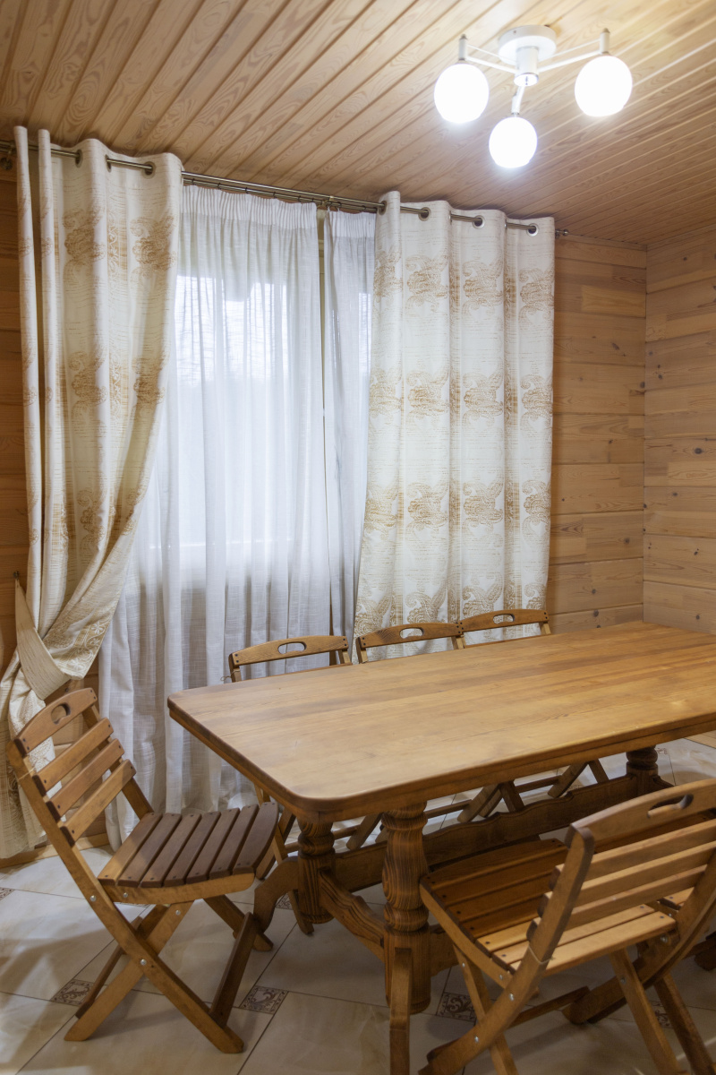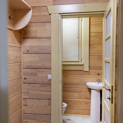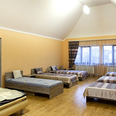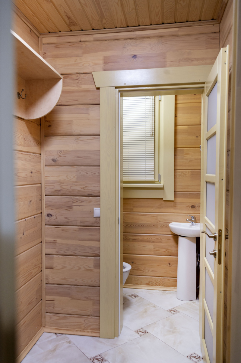 В распоряжении гостей 8 спальных комнат — от уединённых одноместных до семейных шестиместных. Интерьеры в светлых тонах, без излишнего декора, но с максимальным комфортом: уютные гостиные, полностью оборудованные кухни и ванные комнаты с душевыми кабинами.
