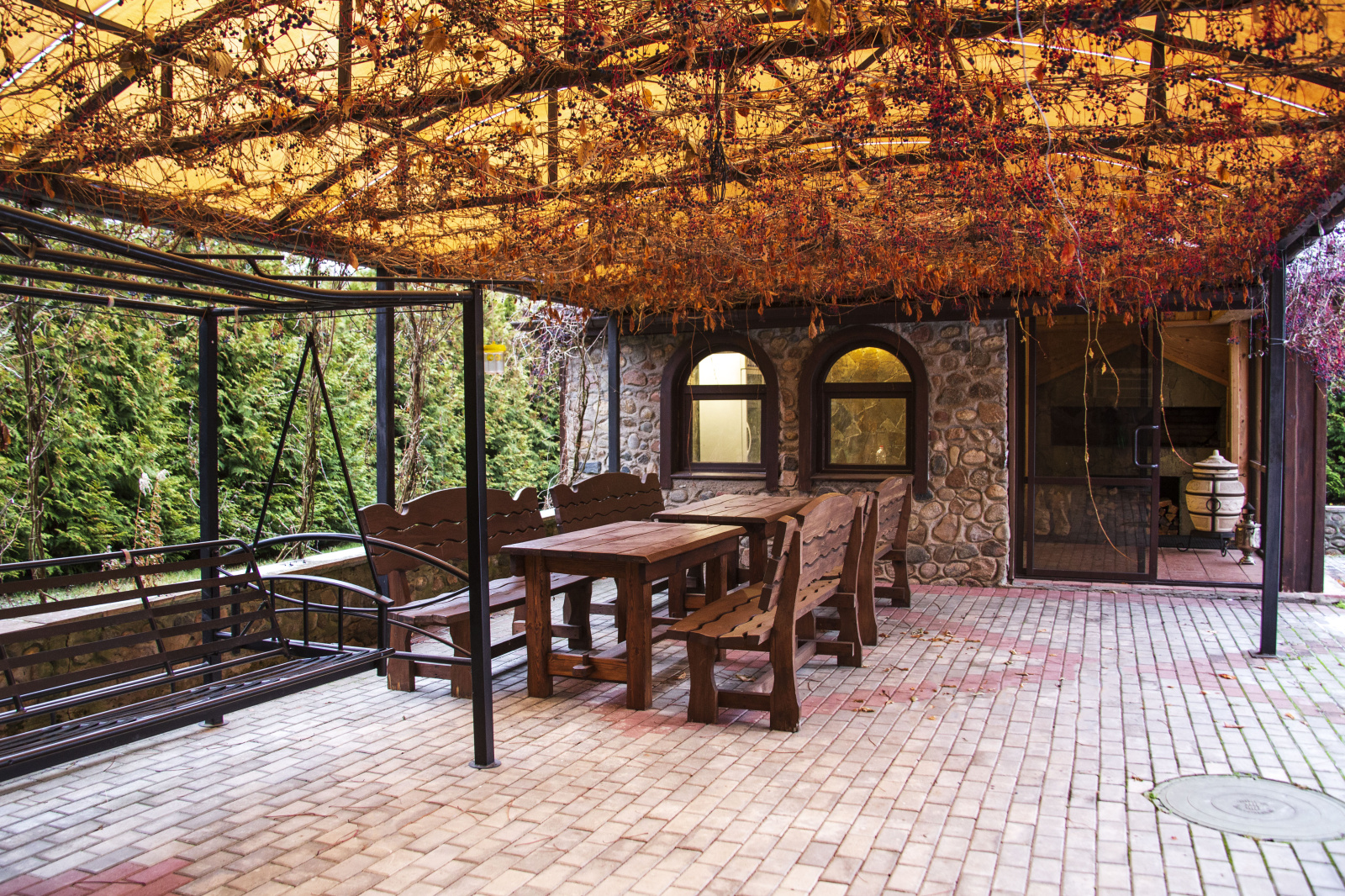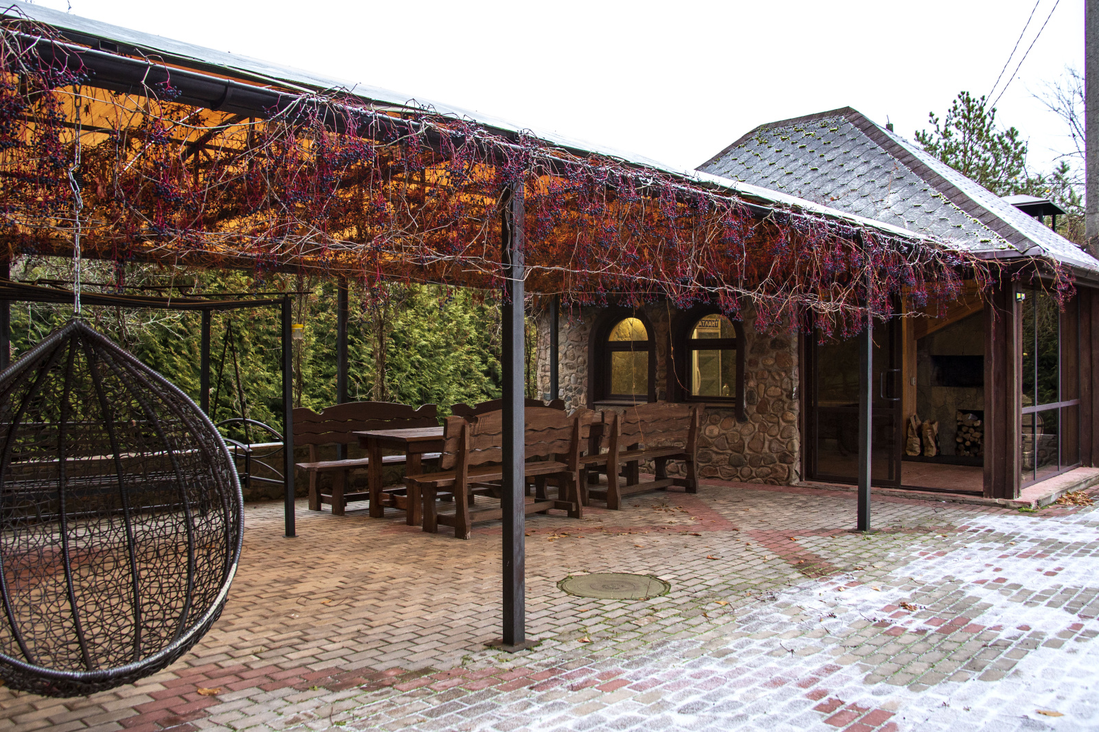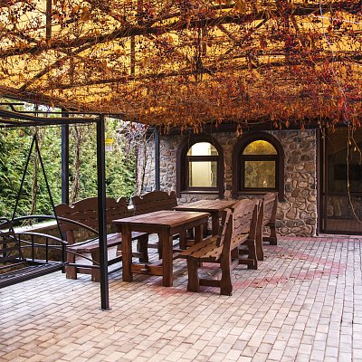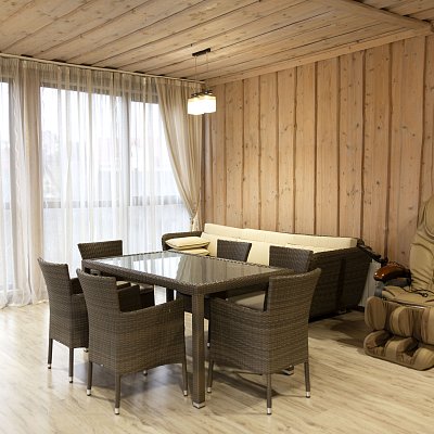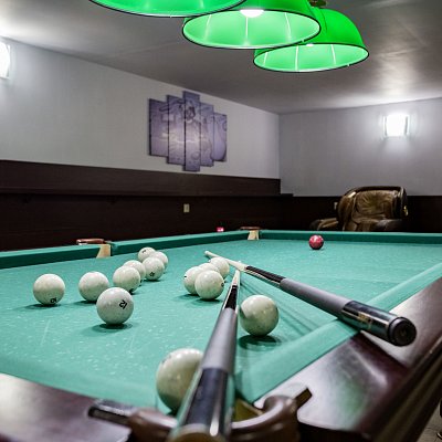 Отдых на свежем воздухе обеспечат открытая и закрытая беседки — идеальное место для застолий, общения и шашлыков. Баня на 8 человек с комнатой отдыха, большим деревянным столом, массажным креслом и выбором напитков позволит восстановить силы после активного времяпрепровождения.